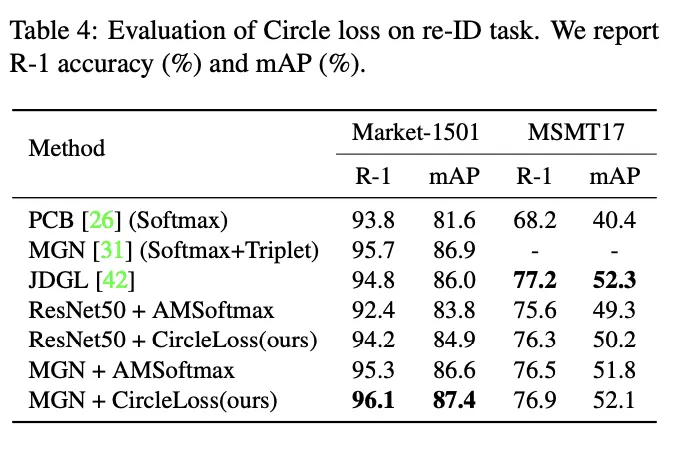 - Circle loss能够兼容class-level标签和pair-wise标签,通过简单的修改就能变化为triplet loss或softmax loss。