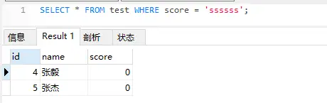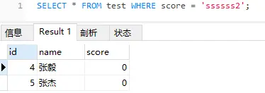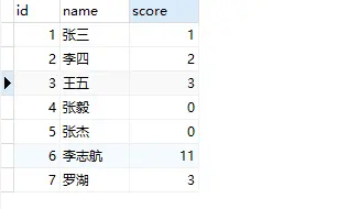 创建一个表如下(score字段int类型)