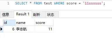 由此可以得出结论:mysql当使用String去查询int类型时,会从左到右截取数字部分,如果字符串左端没有数字则为0.