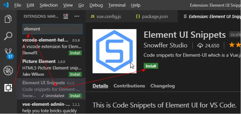 在VS code中安装 Element UI Snippets和HTML CSS Support插件,有element语法提示