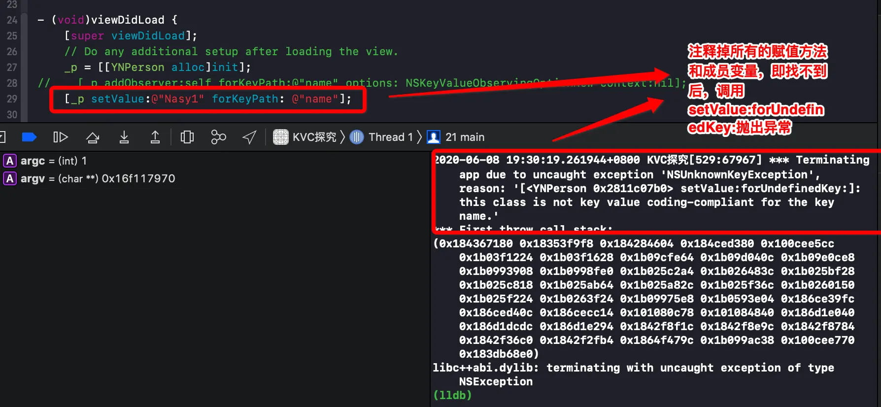 @interface YNPerson : NSObject { @public NSString *_name; NSString *_isName; NSString *name; NSString *isName; } @end- ViewController 中的调用代码如下: