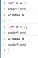 当用var声明变量是变量会自动成为顶级对象的属性,而使用let声明的变量