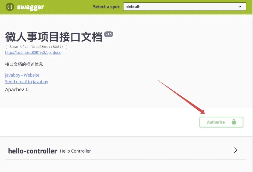- 在 apiInfo 中,主要配置一下 Swagger2 文档网站的信息,例如网站的 title,网站的描述,联系人的信息,使用的协议等等。