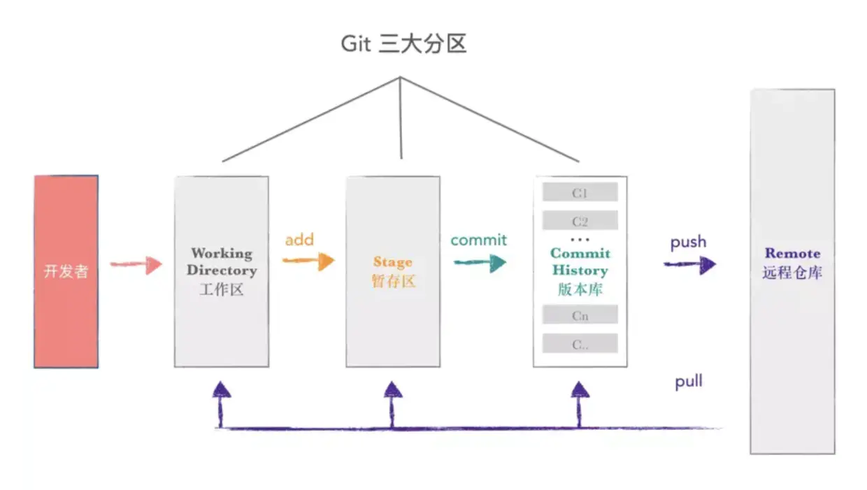 这种情况就是已经 commit 了,生成快照,文件进了版本库 Commit History,然后 push, 远程库与本地库同步一下。