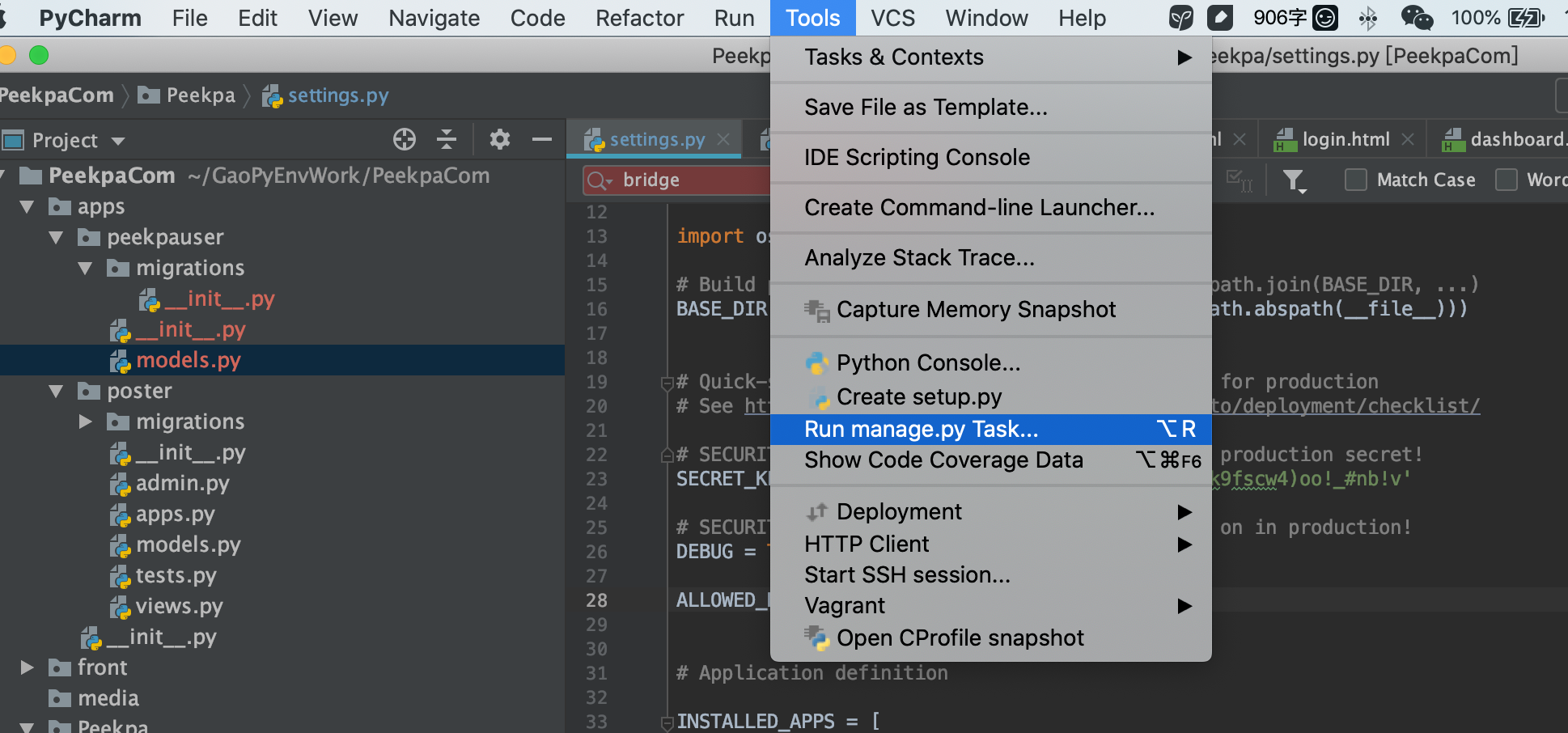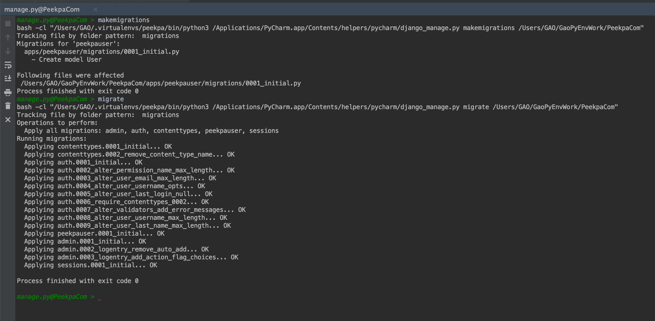 在这个models.py文件里面,我们就需要编写我们的PeekpaUser的模型代码。