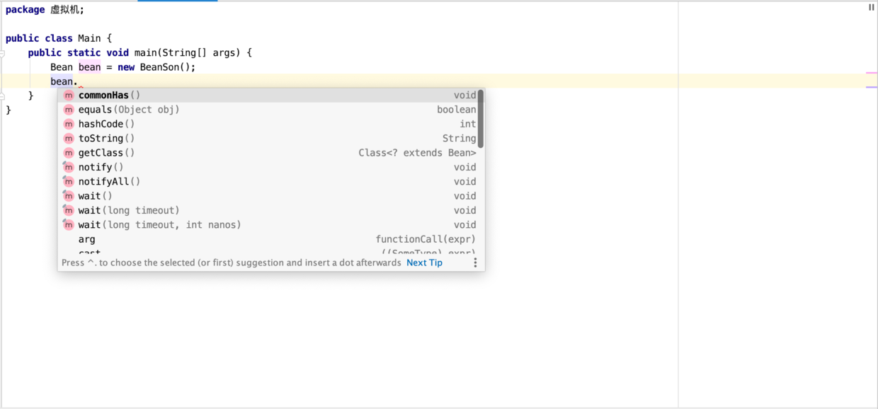 然后使用上面的Main类中的对象bean去调用这个函数,会出现什么情况?