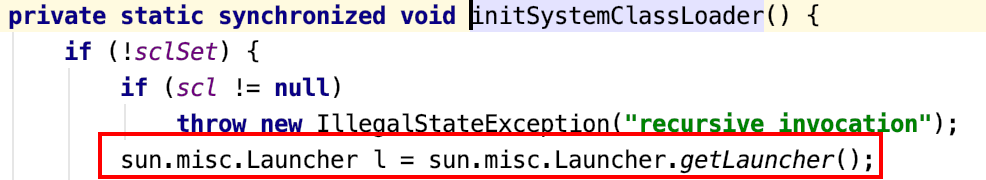 然后在initSystemClassLoader()函数中调用了一个Launcher的类。