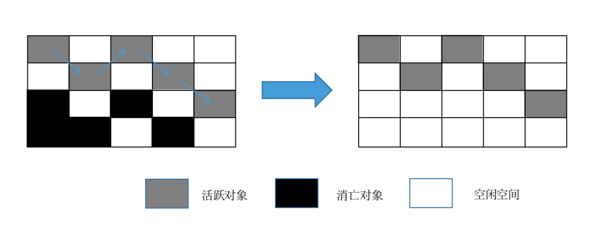 如图所示,搜索出活跃的对象,清除消亡对象。