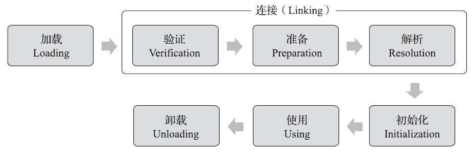 通过这张图我们可以了解到,关于类的加载其实就是可以分为五个大阶段,不过下面文中主要从加载、验证、准备、解析还有初始化这五个方面来做一个讲解: