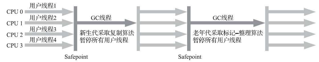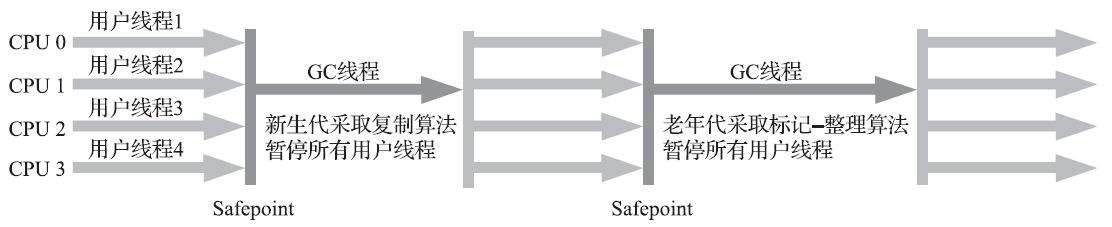 Serial收集器相仿。对于老年代而言,同样采用的是Stop The World的方案,但是对于新生代,多线程的加入无疑是能够提高效率的方案,多线程中垃圾收集的时间能够成倍数下降,也就更能让用户感知不到卡顿感觉。