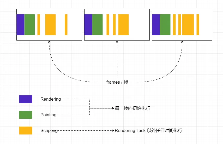 在上面的event loop执行机制中,没有提到rendering task,是因为rendering task是由浏览器自行去决定何时运行的,与当前设备的屏幕刷新率等因素相关,确定的是: