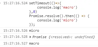 //macro task 1 调用栈清空,microtask queue清空,此时可以执行一个位于队首的macro task,执行期间新增一个microtask