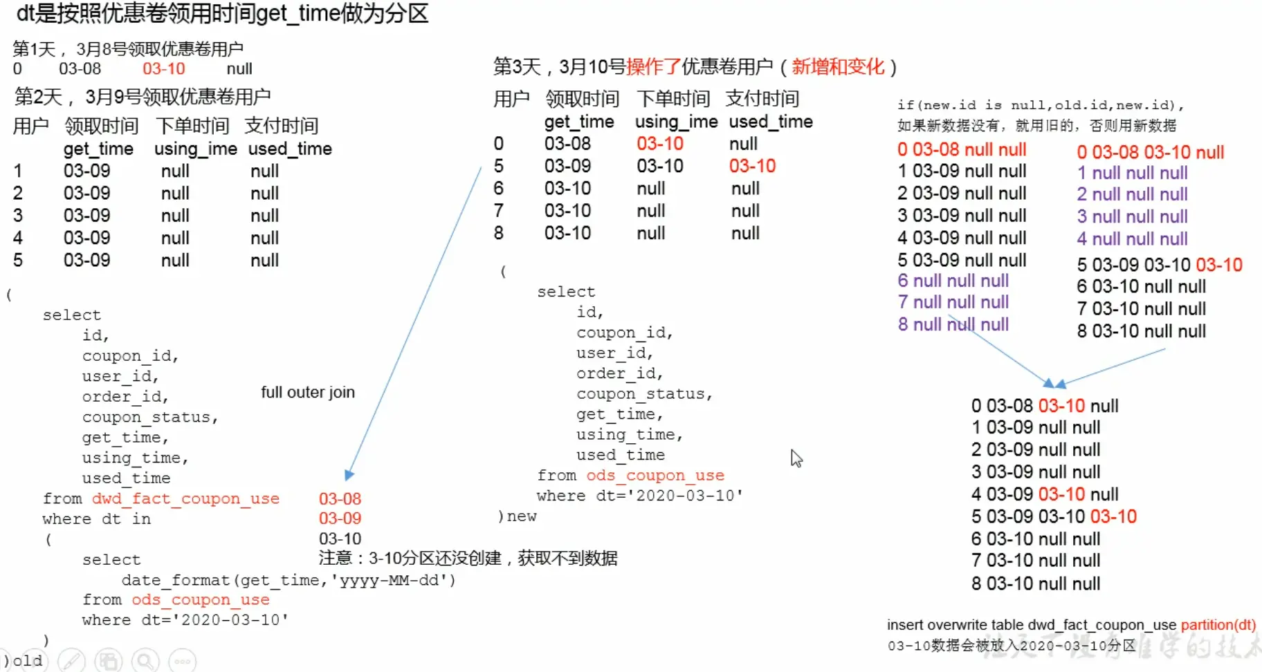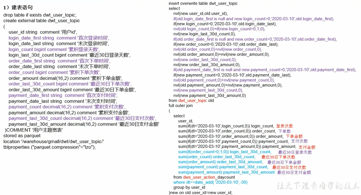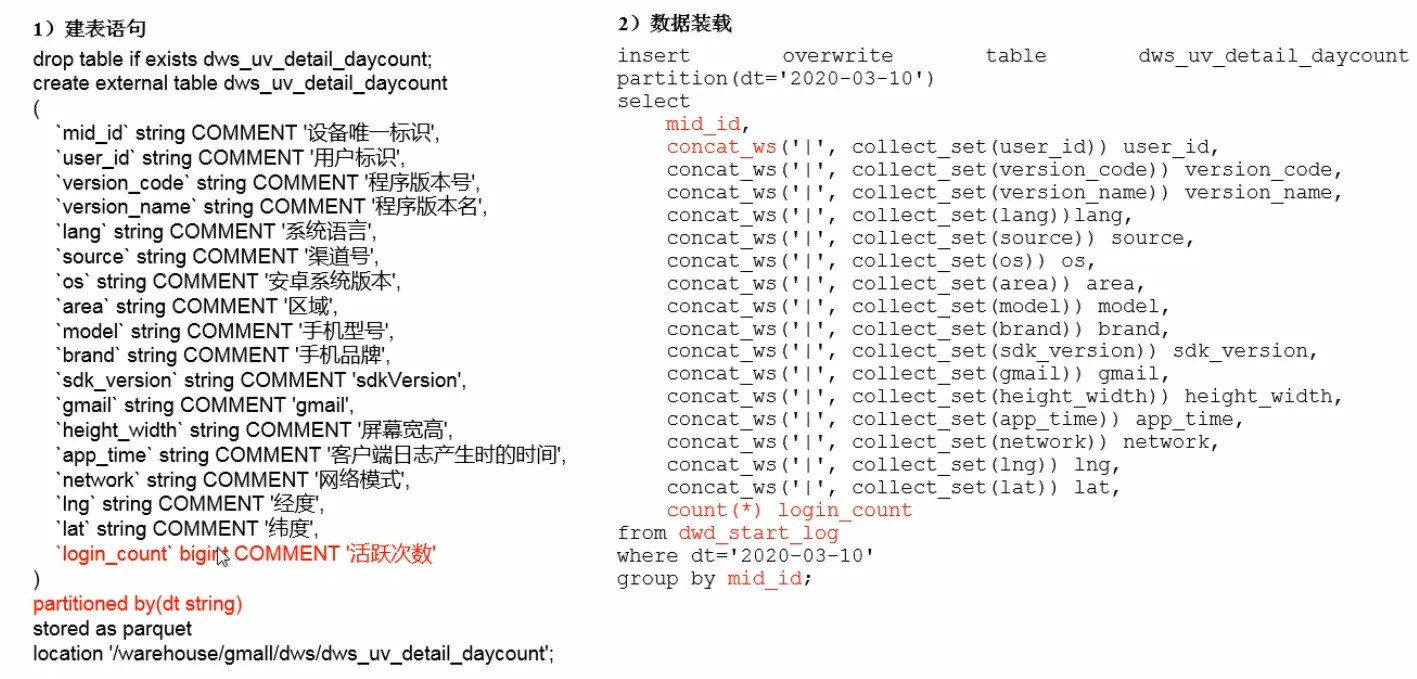 - DWS 服务数据层:以DWD为基础,按天进行汇总。