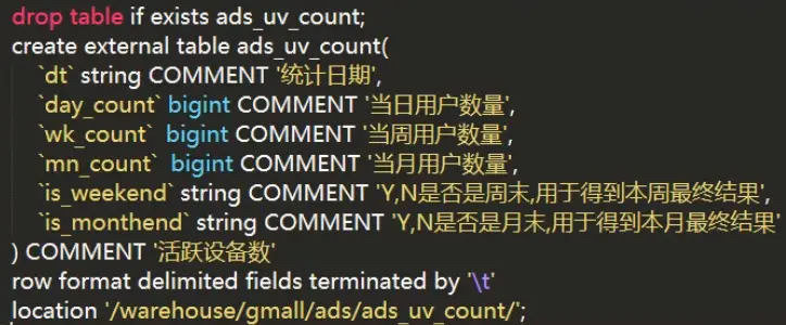 - ADS 数据应用层:以DWD和DWS为基础。执行SQL,为各种统计报表提供数据。