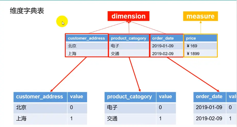 维度字典表:kylin为每一个维度创建字典表。