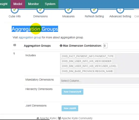- 需要使用在定义cube时设定的aggregation方式