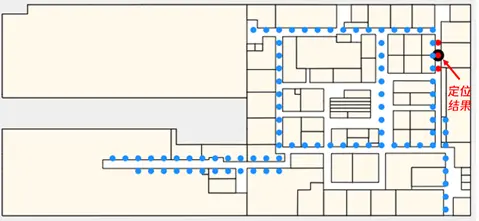 目前,腾讯地图定位平台对国内的主要商场都提供了基于Wi-Fi指纹的室内定位服务。然而,受到指纹采集成本和导航需求等因素的限制,目前指纹采集主要集中在商场走廊区域。图1展示了在北京欧美汇购物中心某一层中我们采集的Wi-Fi指纹的覆盖情况。从图中我们可以看到,对于商场内主要的走廊区域,我们都进行了指纹的采集。然而,对于范围更大的店铺部分,目前采集Wi-Fi指纹的流程很难覆盖到。这种指纹覆盖不全的情况会导致我们无法在整个商场内保证定位质量的一致性。当有用户在店铺内发起定位请求时,由于店铺内缺失Wi-Fi指纹信息,理想的情况是恰好在店铺门口采集的Wi-Fi指纹与用户请求定位时扫描到的Wi-Fi信息比较类似,将用户定位在店铺门口。然而,更糟糕的一种情况则是如图2展示的那样,我们将用户定位在了一个离店铺较远的位置,严重降低了用户的定位体验。