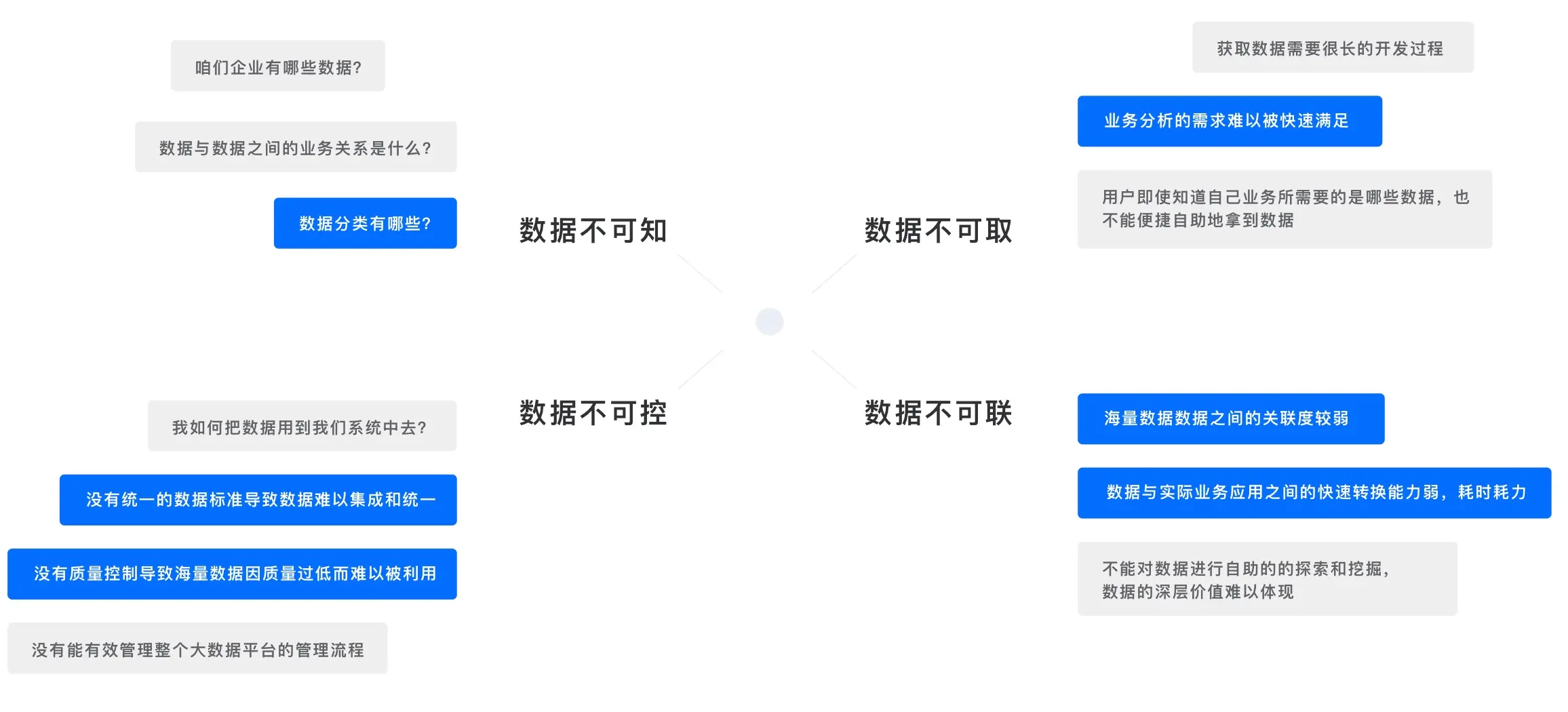 其实通过元数据信息收集、数据血缘探查、数据权限申请授权等手段,解决"有哪些数据可用"、"到哪里可以找到数据"的难题,并且提升数据资源的利用率也是数据中台的一大特色。