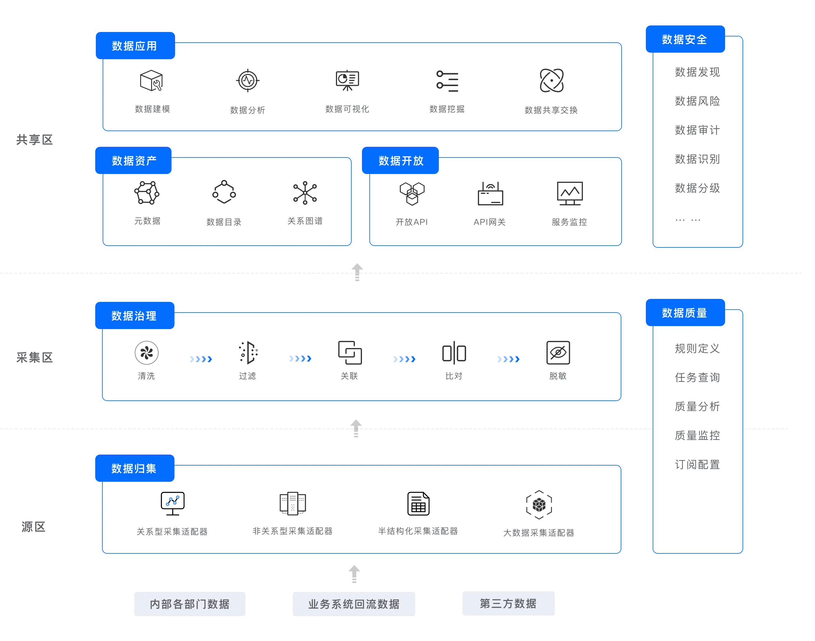 围绕数据来进行功能设计的话其实有很多,大而全又或者是小而精,这取决于用户对于数据使用的成熟度,比如小的区县政府,他们更多的是深耕某一块,毕竟想要从头搭建完整的数据运维体系所耗费的成本也是比较高的。