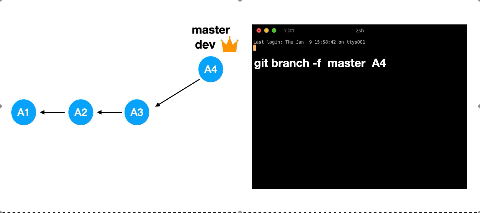 git branch -f master 6 把master分支移动到相应的快照上