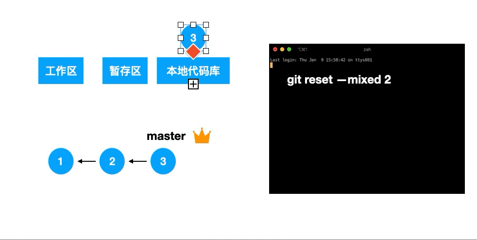 下面介绍几个常用的git reset命令:
