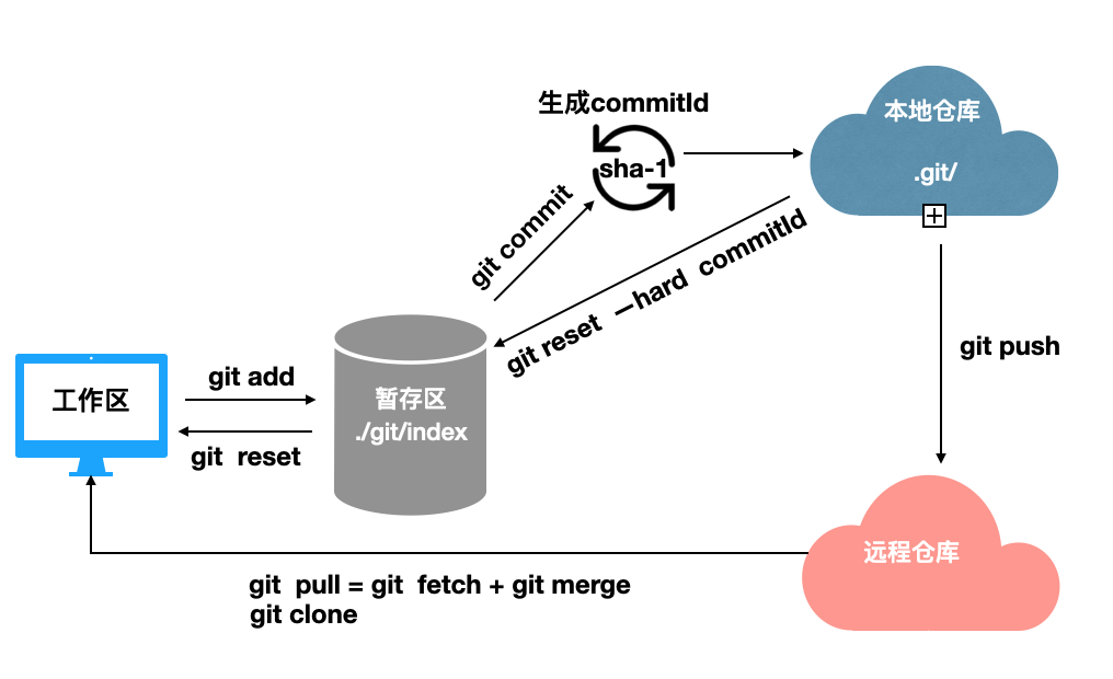| 版本号 | 仅有一个中央仓库,很容易实现索引的连续性, 每次操作都会使索引号+1 | 由于分布式的原因, 采用了40字符长度的哈希值作为索引 |