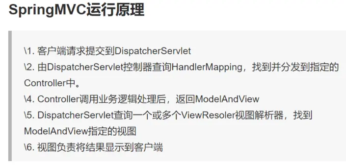 1、一个请求匹配前端控制器 DispatcherServlet 的请求映射路径(在 web.xml中指定), WEB 容器将该请求转交给 DispatcherServlet 处理