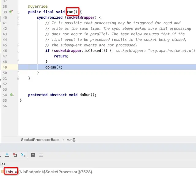 在socket监听到客户端信息之后,交由线程池处理 执行doRun方法