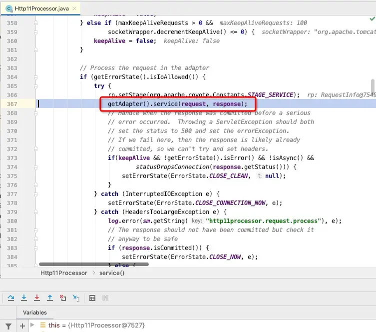 再到processor获取Coyote执行service方法