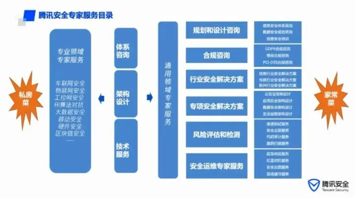 那我们私房菜的话就是我们腾讯有特色的包括我们车辆、物联网、工控,包括一些硬件、区块链这样的安全。这块内容的话我们也是以专家服务的方式来提供,跟等保没有关系,我们是一个专项领域里面的一个服务能力。