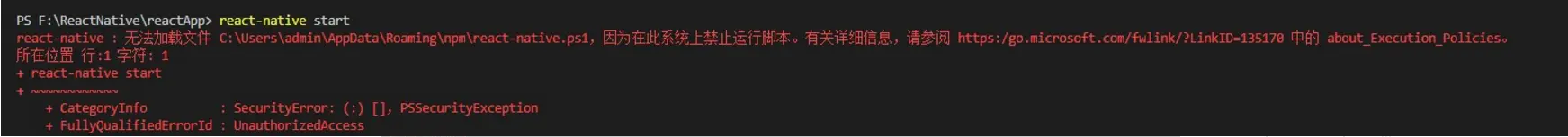 报react-native : 无法加载文件 C:\Users\admin\AppData\Roaming\npm\react-native.ps1,因为在此系统上禁止运行脚本 错误,这是因为权限问题导致的