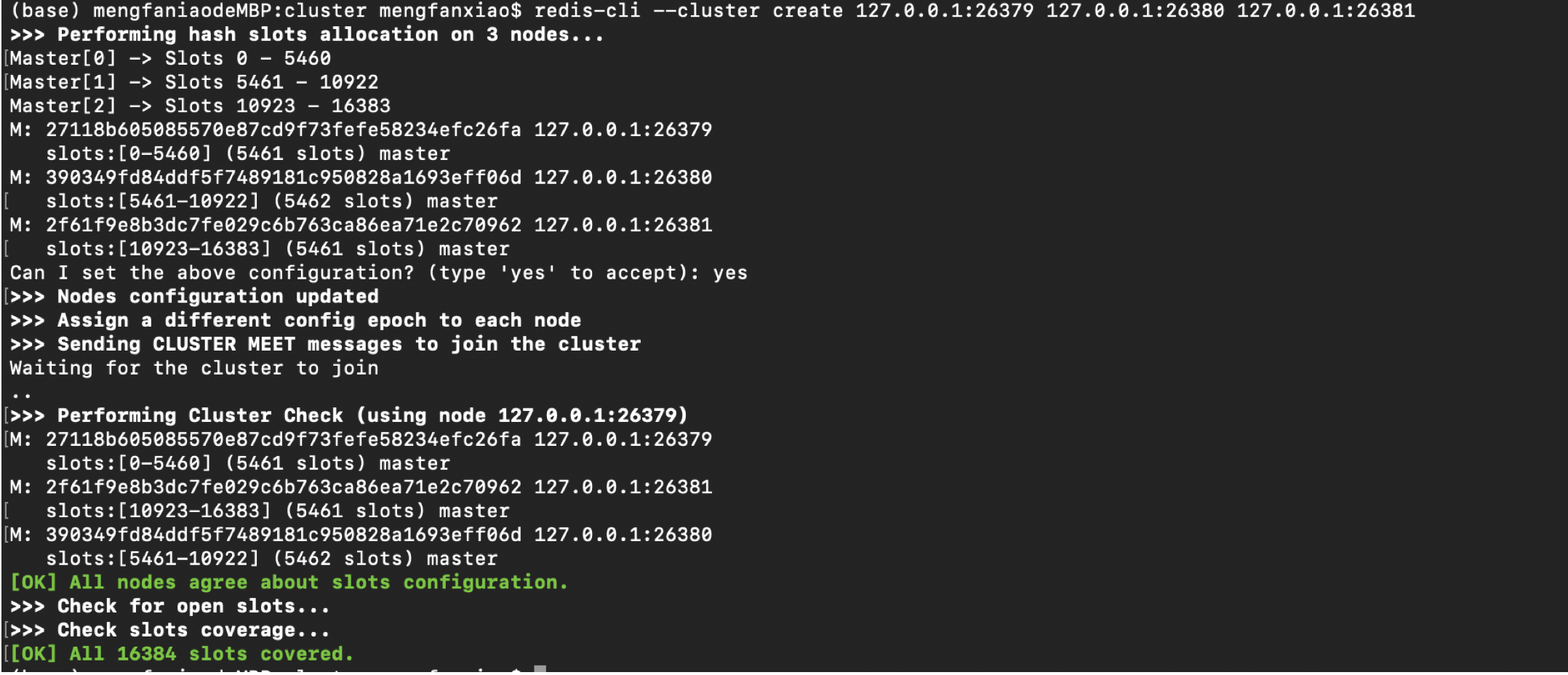 redis-cli --cluster create 127.0.0.1:26379 127.0.0.1:26380 127.0.0.1:26381 --cluster-replicas 1