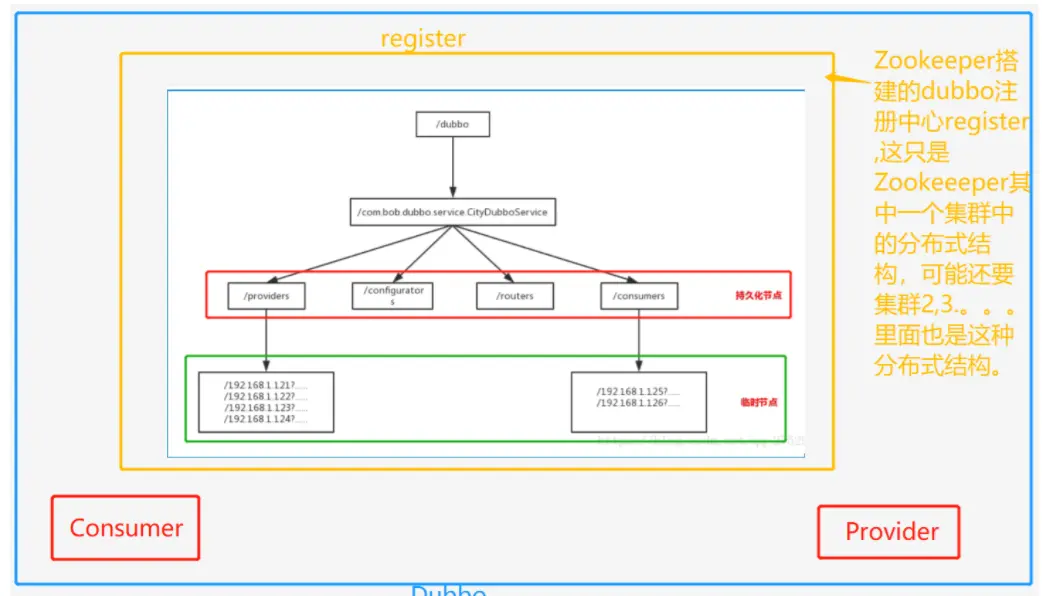 dubbo其实就是一个中间层管理工具,他是一个框架,里面可以装你想装的服务,一般注册中心大多用zookeeper,当然除了zookeeper,还要Redis等也可以做注册中心。