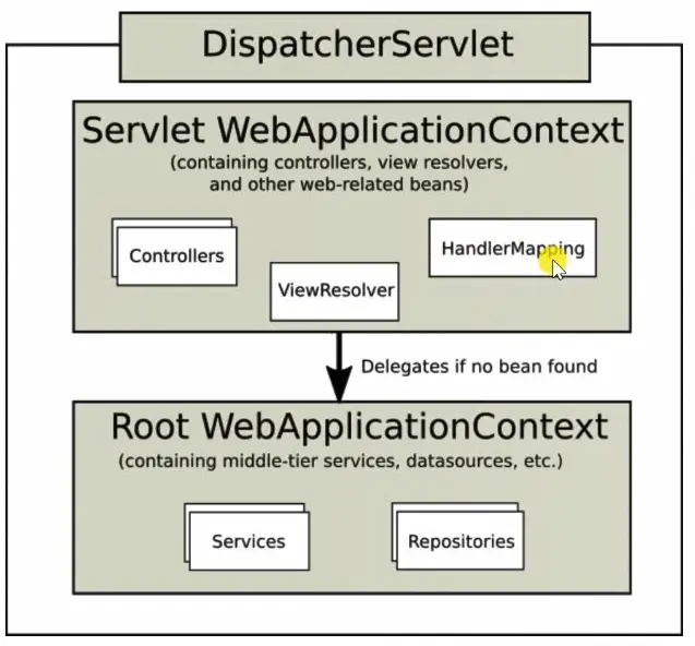 - 核心组件:前端front控制器DispatcherServlet,负责调度