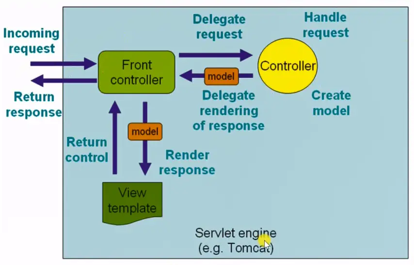 HandleMapping负责管理RequestMapping的映射 controller封装数据为Model,返回给front controller。viewtemplate文档值,有一些可以用model里的值进行动态的替换,替换完之后就可以生成一个动态的网页。