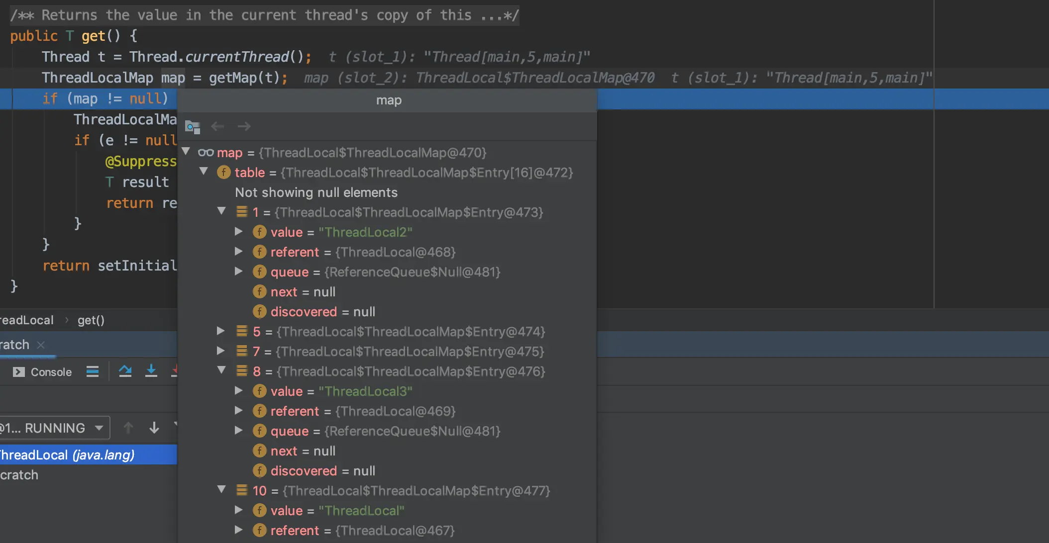 ThreadLocalMap map = getMap(t);