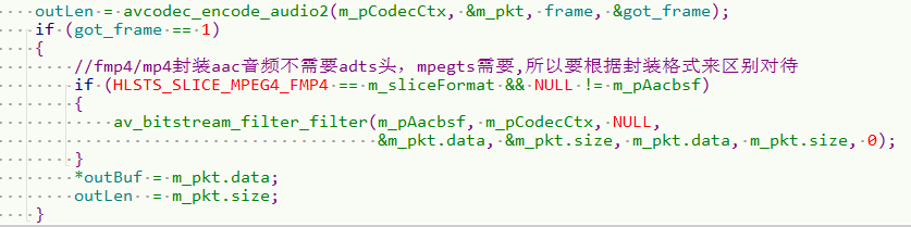 音频我们去掉ADTS头形成ASC,一般就是将读出来的AvPacket进行过滤器进行转化下即可: