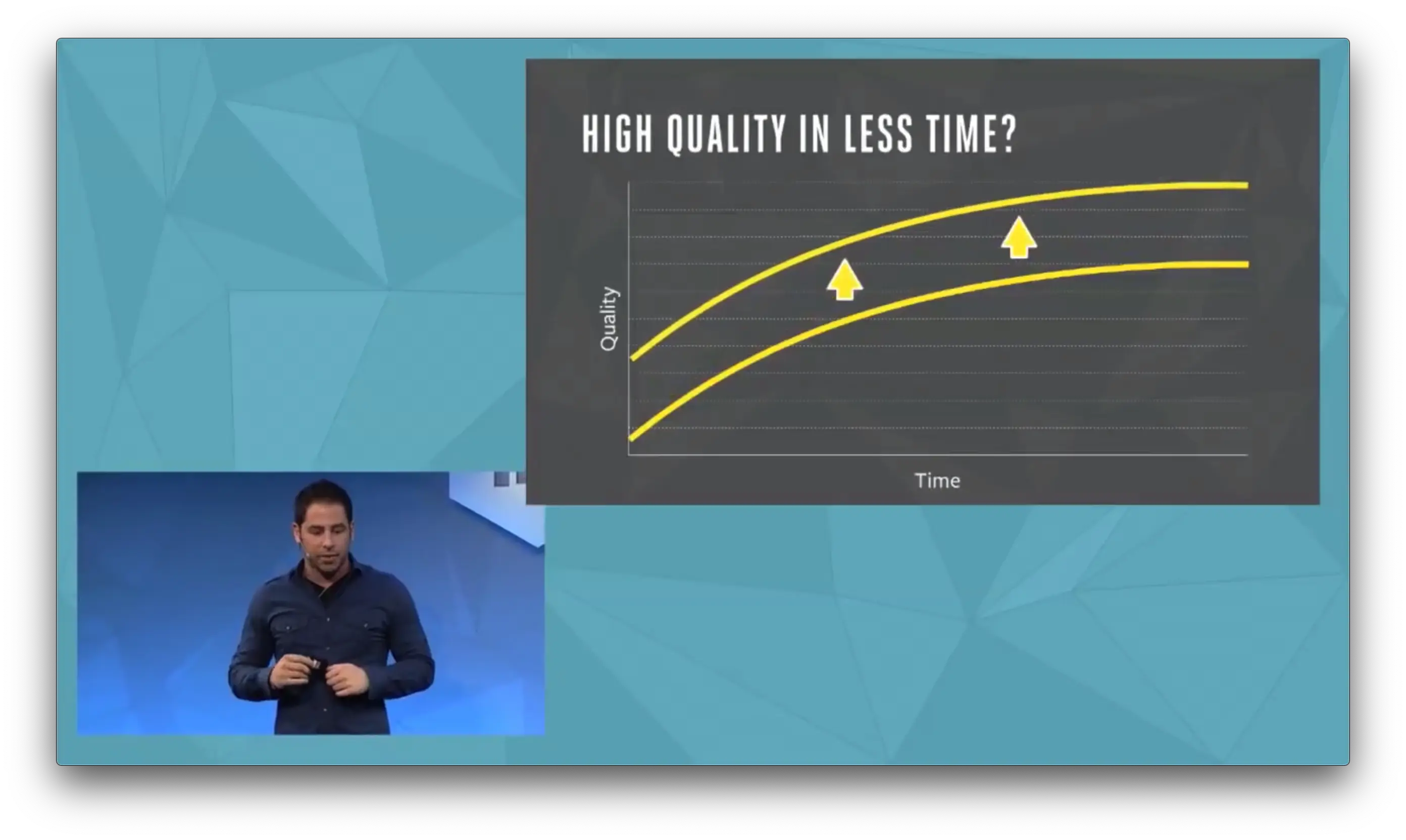 在 Facebook 公司内部工程师需要保证交付软件的质量,但是高质量意味着需要花费更多的时间;但另一方面公司也希望崇尚 move fast 的核心价值,也就是要用更少的时间交付更多的价值,于是这两者间似乎产生了矛盾,如何用更少的时间交付更高质量的软件。