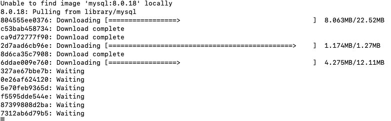 首次启动时,由于没有 MySQL 镜像,可能需要花 10 分钟左右下载(具体时间取决于网络环境):