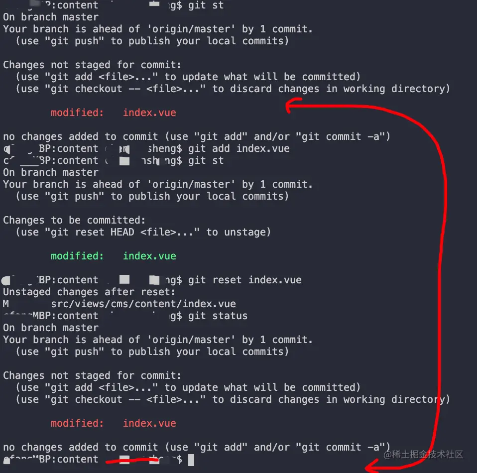 git reset index.vue 全称是 git reset --mixed HEAD index.txt