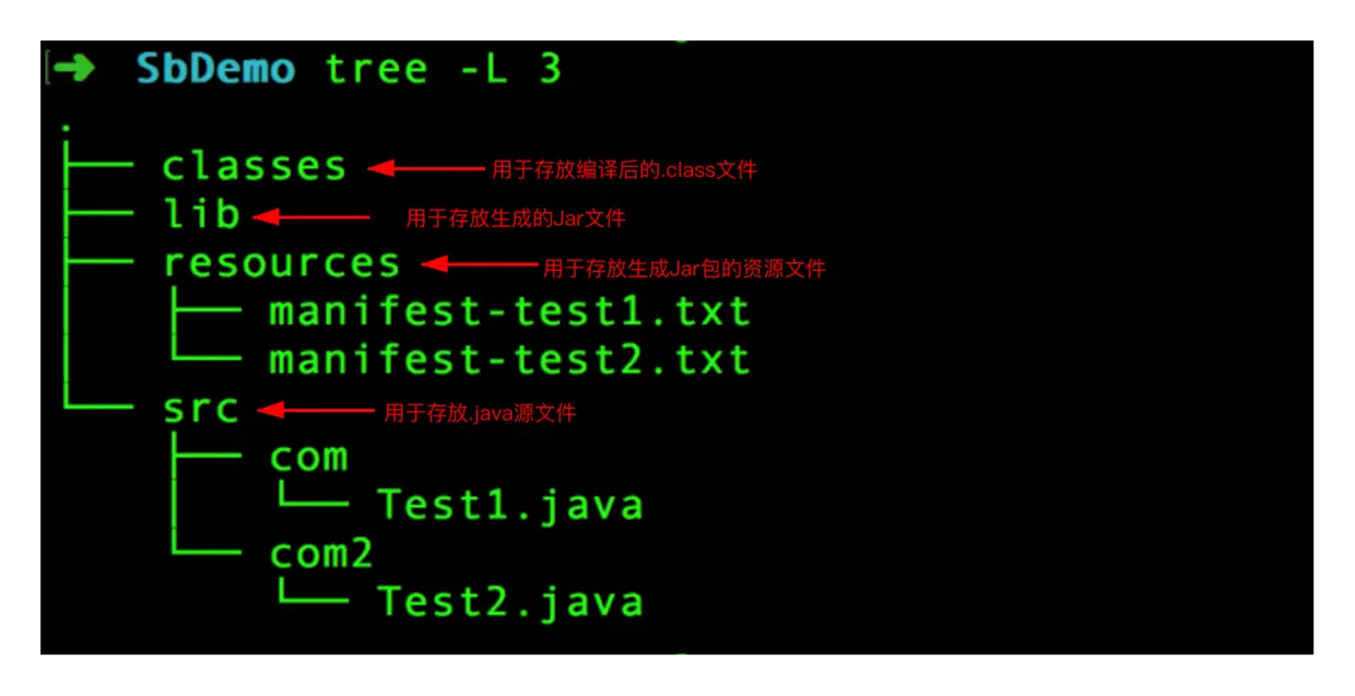 我们以一个SbDemo项目为例来看Jar文件的打包和运行。项目目录结构如下: