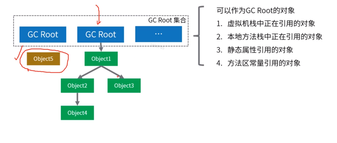 简单来说,将对象及其应用关系看作一个图,选定活动的对象作为GC ROOTS 然后跟踪引用链条,如果对象和GC TROOTs之间不可达, 也就是不存在应用,就可以被回收了