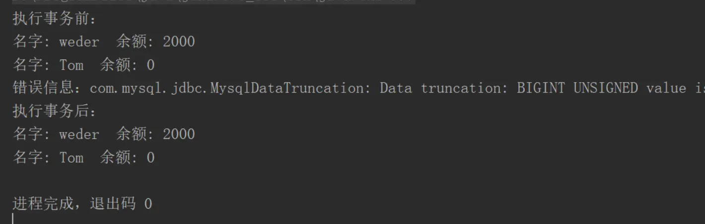 //出现问题则使数据回滚,回到执行事务前的数据状态
