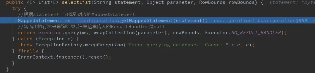 ErrorContext.instance().activity("handling results").object(mappedStatement.getId());
