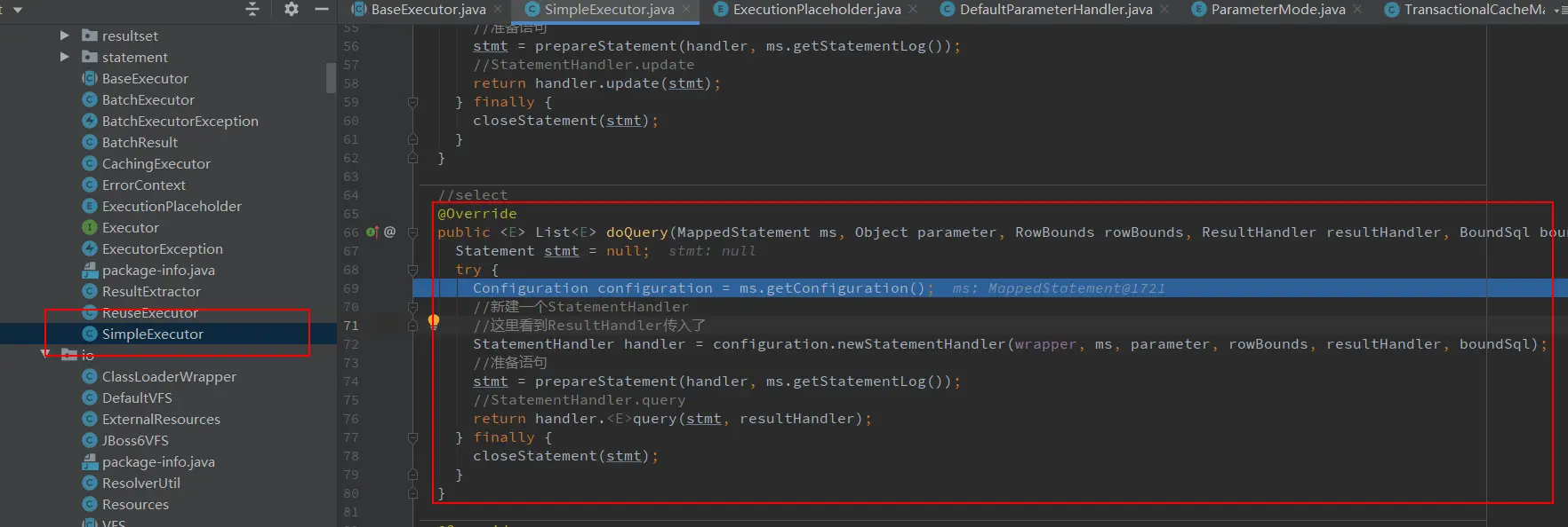- stmt = prepareStatement(handler, ms.getStatementLog());执行进入prepareStatement()方法