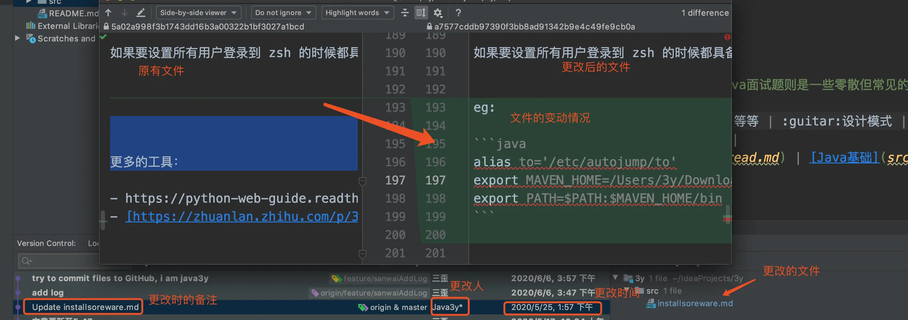 三歪:”更改的内容指的就是:基于原有的基础上更改了什么,以及提交者是谁。这样子,我们就没法甩锅了。说白了就是,我们能知道的文件被改了什么,以及谁改了“。