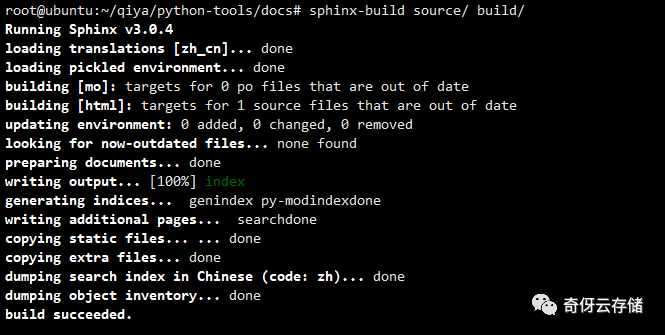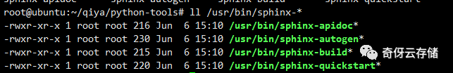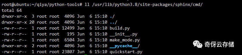 root@ubuntu:~/qiya/python-tools/docs# tree .├── build├── __init__.py├── make.bat├── Makefile└── source ├── conf.py ├── index.rst ├── _static └── _templates