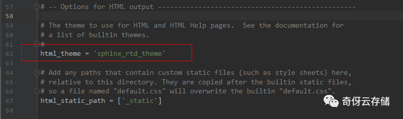 # 指明用 autodoc 的形式生成extensions = [ 'sphinx.ext.autodoc']# 指明用 sphinx_rtd_themehtml_theme = 'sphinx_rtd_theme'