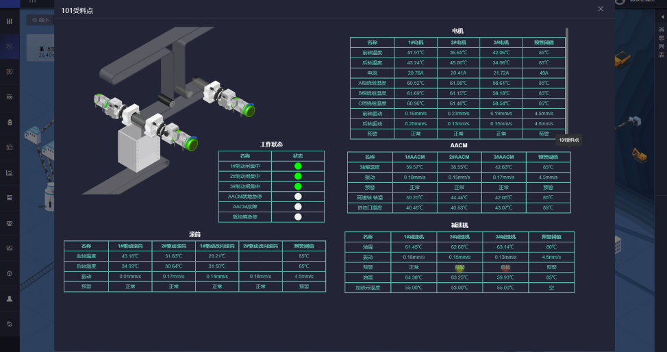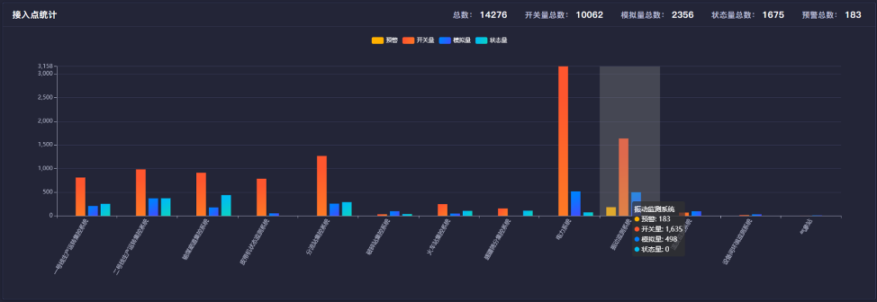 地面生产集控系统采用的PLC设备采集的信号统一接入智能预警平台,整合一、二期集控系统、机房状态监测系统、电气综保装置、破碎系统等数据接入RED-MOS露天煤矿智慧矿山操作系统。系统中接入的监控点数量将近1万5千点。其中接近2300点需要绑定组态显示,即时页面更新,整体数据采集到显示到前端要求秒级展示。