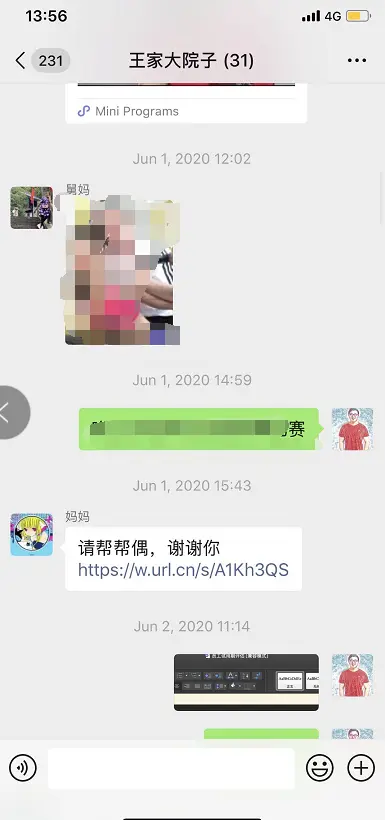 而这一次,邀请好友的分享文案,在设计上点击率较高。比如我是某一天在家族群里看到母亲发的一条消息如下